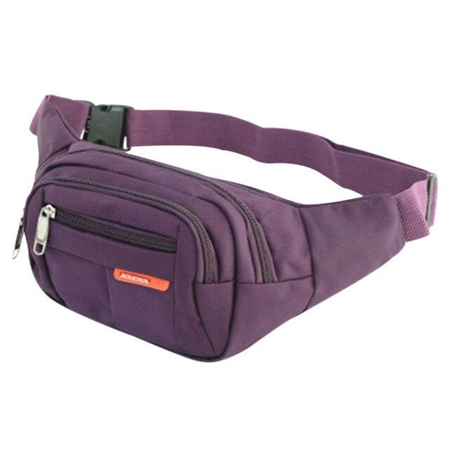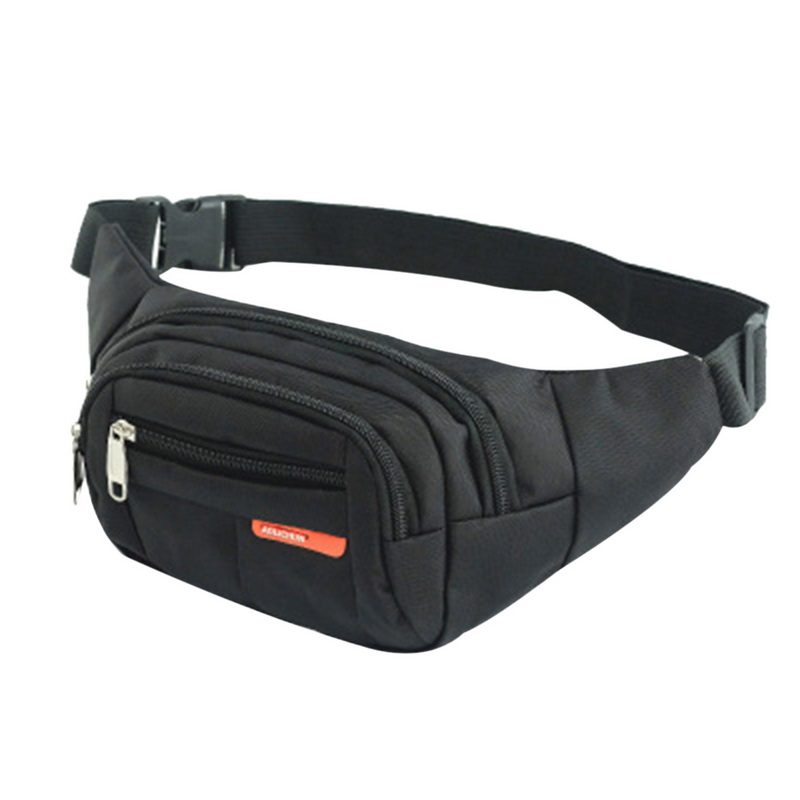 FEATURE1:Zippered front accessory pocket is great for keys,cell phone and other small items. FEATURE2:The front outside surface is made of water-resistant nylon material. FEATURE3:Features adjustable waist straps for greater comfort when moving around.