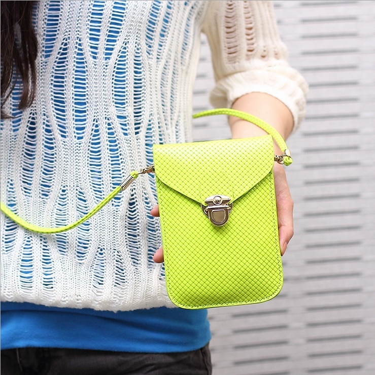 Fluorescence Colors Women Mobile Phone Bags Fashion Small Change Purse Female Woven Buckle Shoulder Bags Mini Messenger Bag