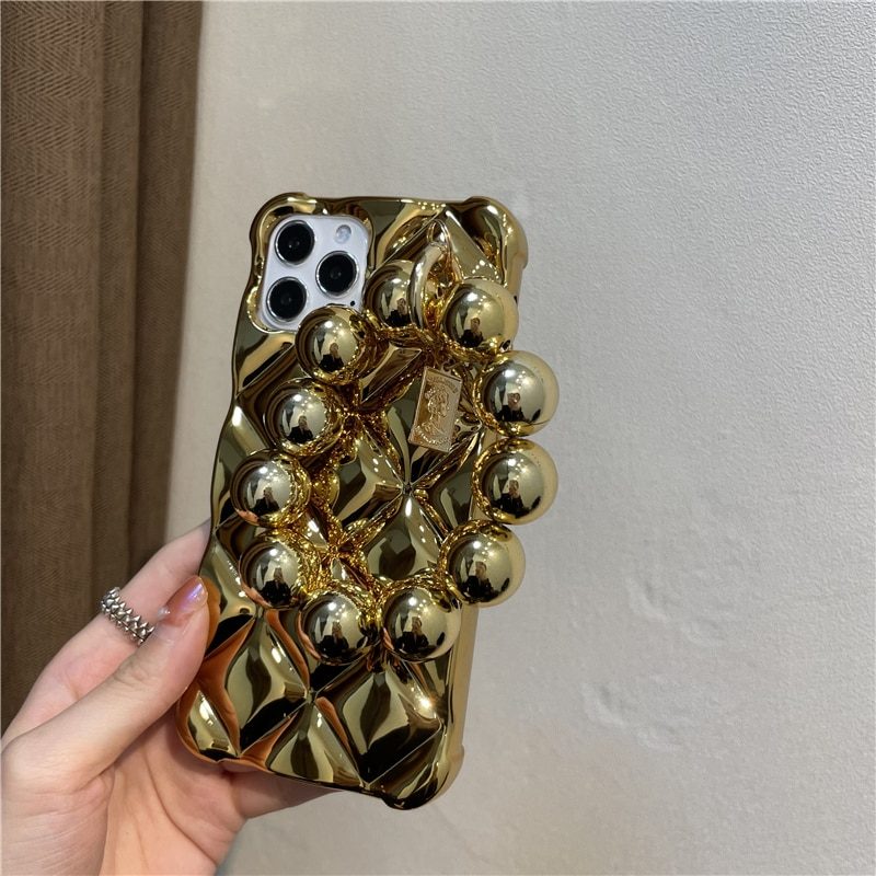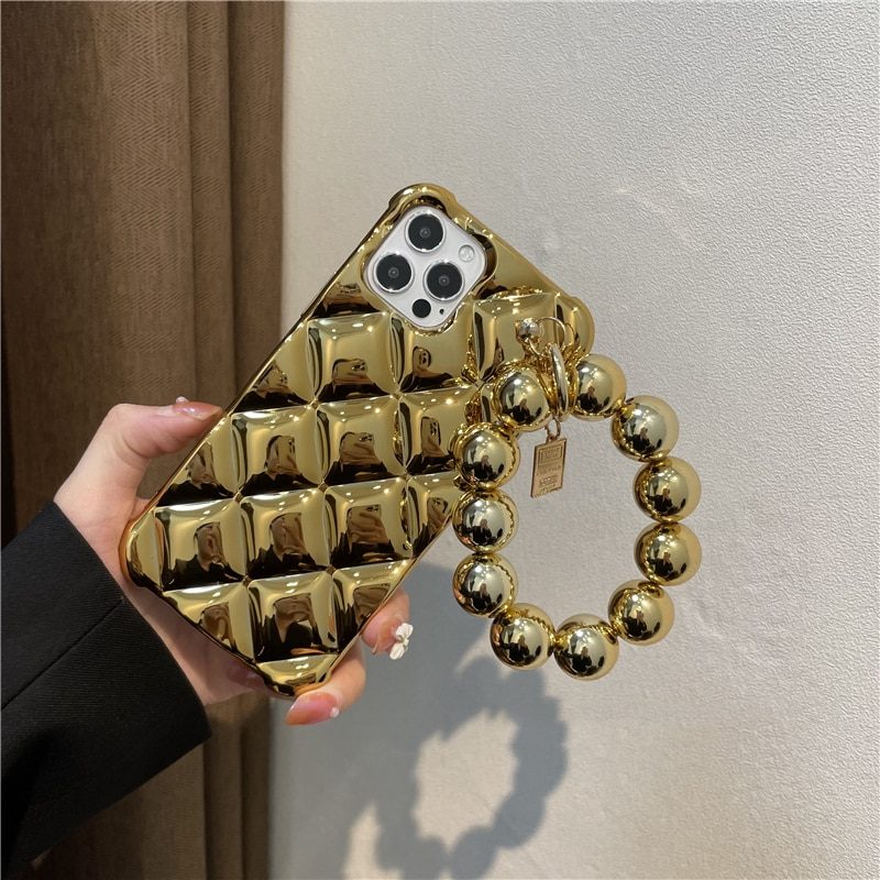 Luxury Diamond Plating Round Beads Hanging Chain Soft Phone Case For iphone 14 13 11 12 Pro Max 7 8 Plus X XR XS SE 2020 Cover