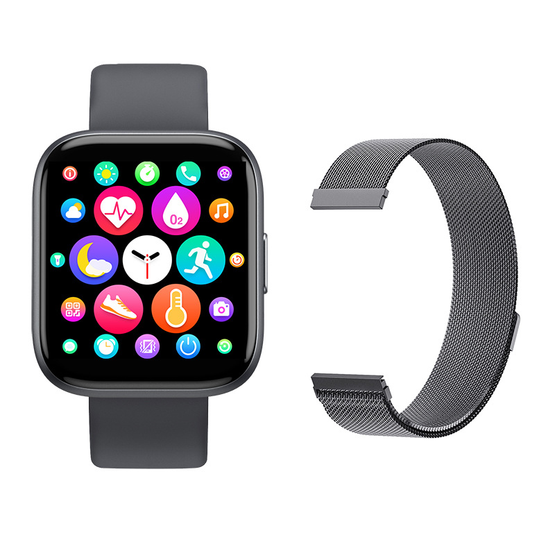 Packaging specifications: 20mm silicone strap (with switch lugs) + 1PCS metal Milanese strap(with switch ear) (optional) + magnetic charging cable